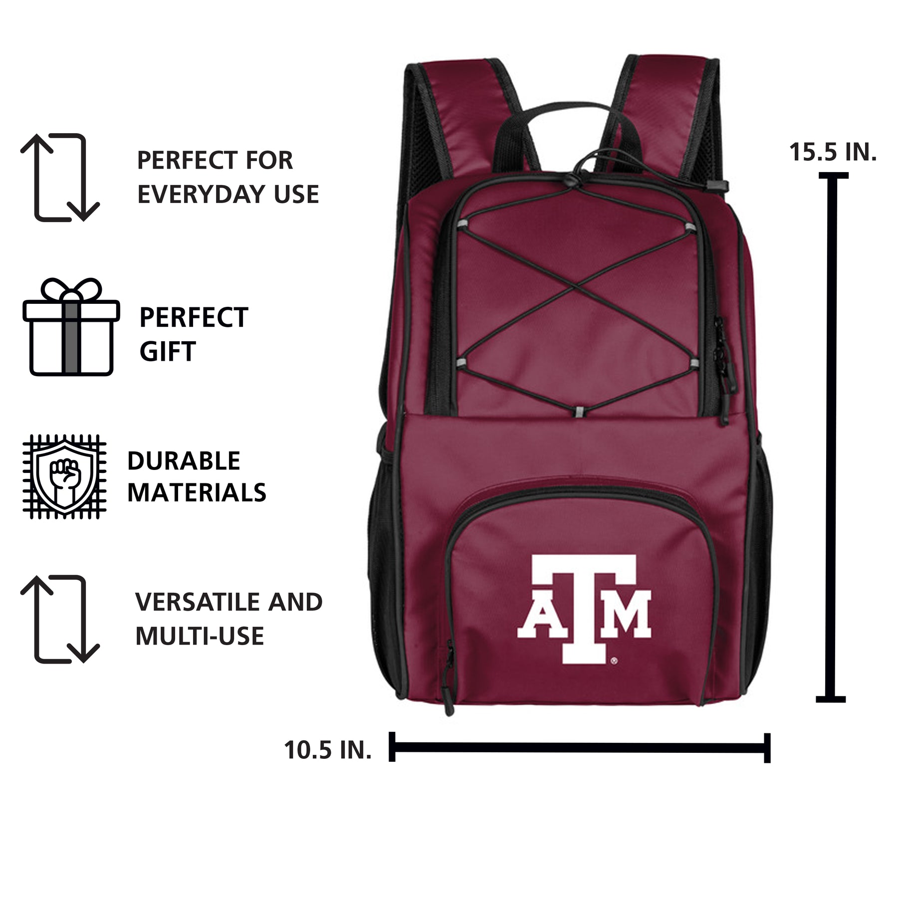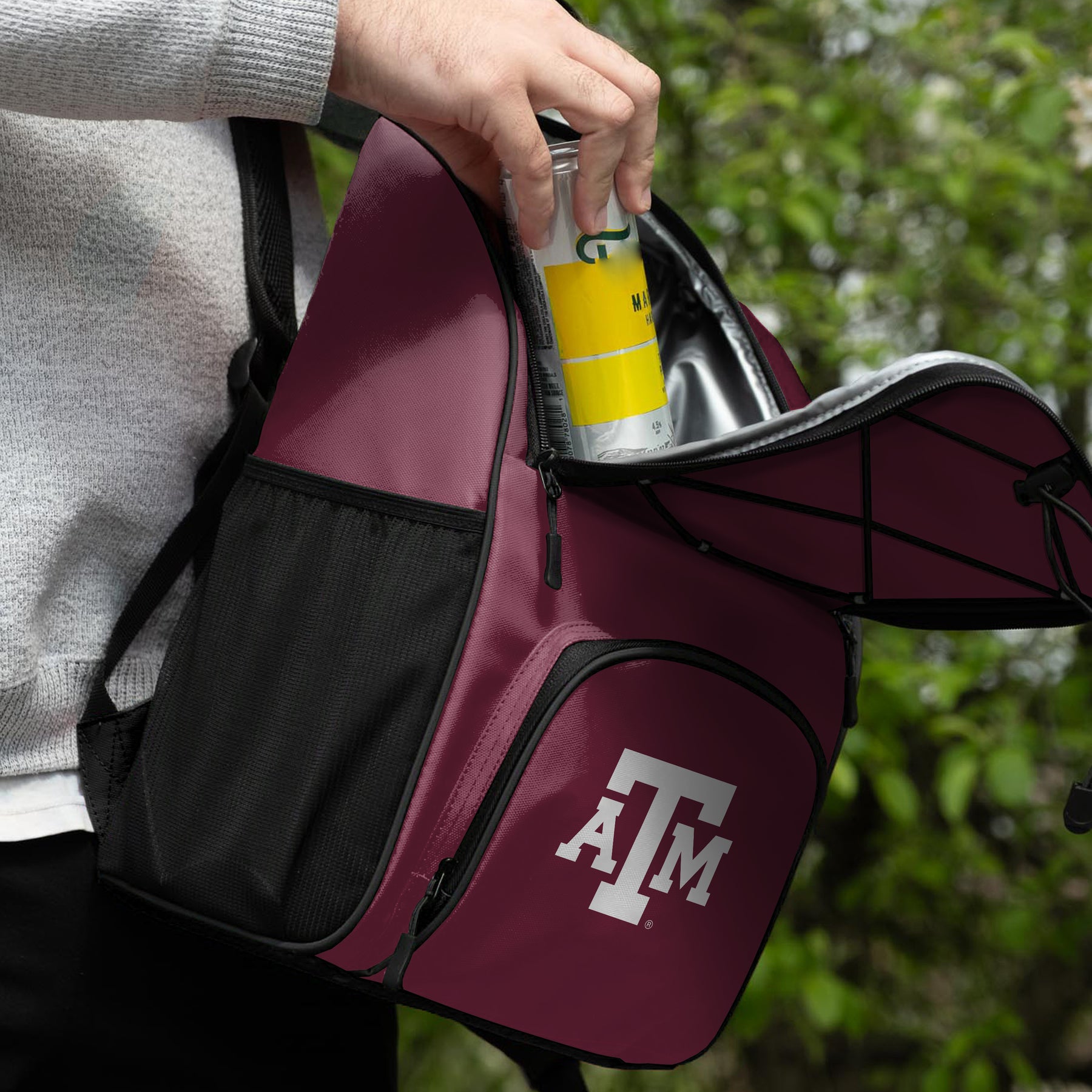 This 24 Can Flex Backpack Cooler goes where you do. No more pulling or carrying your drink cooler, wear it instead! With adjustable backpack straps and a convenient top carry strap, it offers comfortable transport options. Uniquely designed with an adjustable bungee cord top and zipper opening, accessing your cooler has never been easier. Equipped with a front zipper pocket and mesh side pockets, it keeps your essentials organized and within reach, yet safe and dry. Whether you're tailgating, hiking, camping, hitting the beach, or cheering on your child's sports team, our Backpack Cooler is the perfect companion for every occasion.