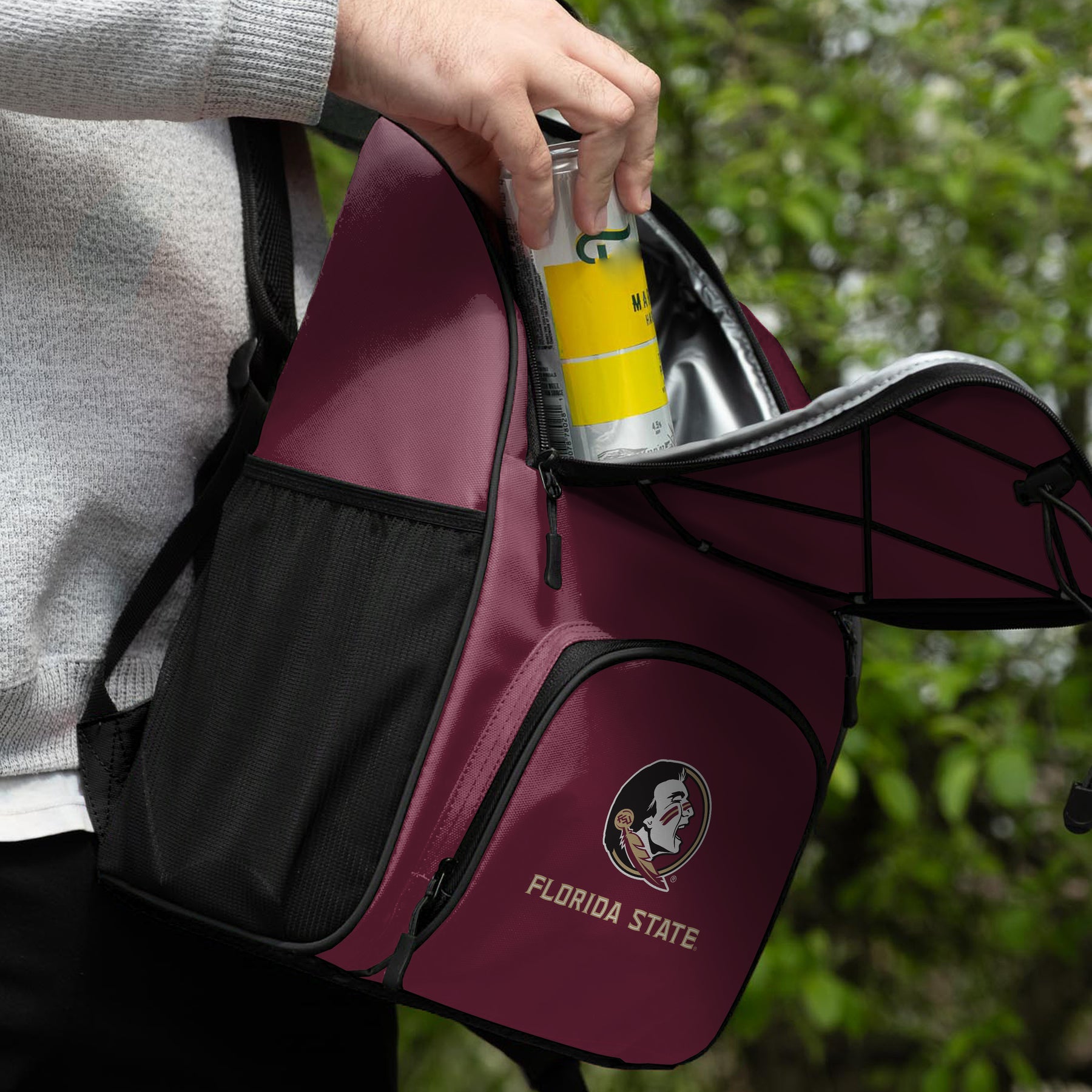 This 24 Can Flex Backpack Cooler goes where you do. No more pulling or carrying your drink cooler, wear it instead! With adjustable backpack straps and a convenient top carry strap, it offers comfortable transport options. Uniquely designed with an adjustable bungee cord top and zipper opening, accessing your cooler has never been easier. Equipped with a front zipper pocket and mesh side pockets, it keeps your essentials organized and within reach, yet safe and dry. Whether you're tailgating, hiking, camping, hitting the beach, or cheering on your child's sports team, our Backpack Cooler is the perfect companion for every occasion.