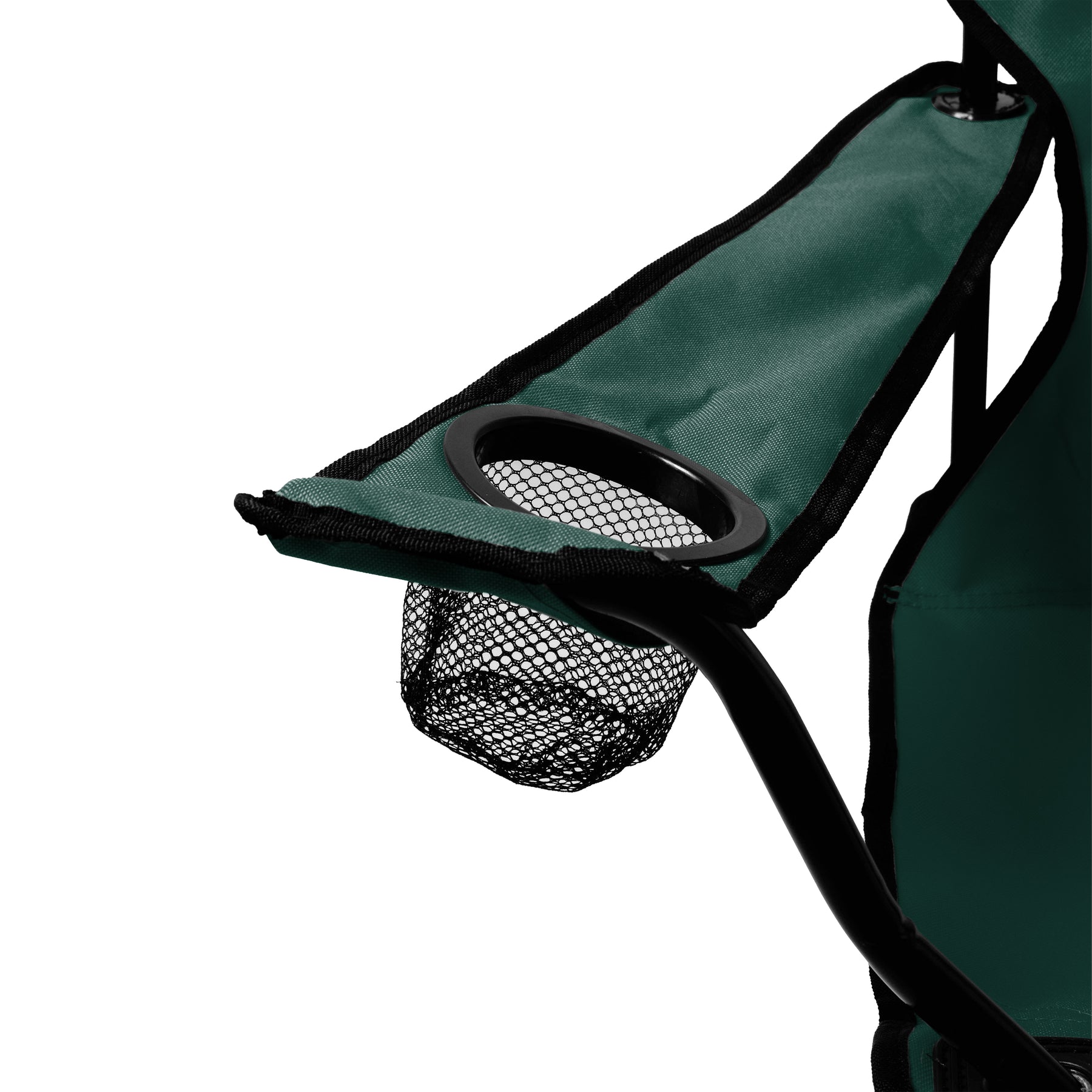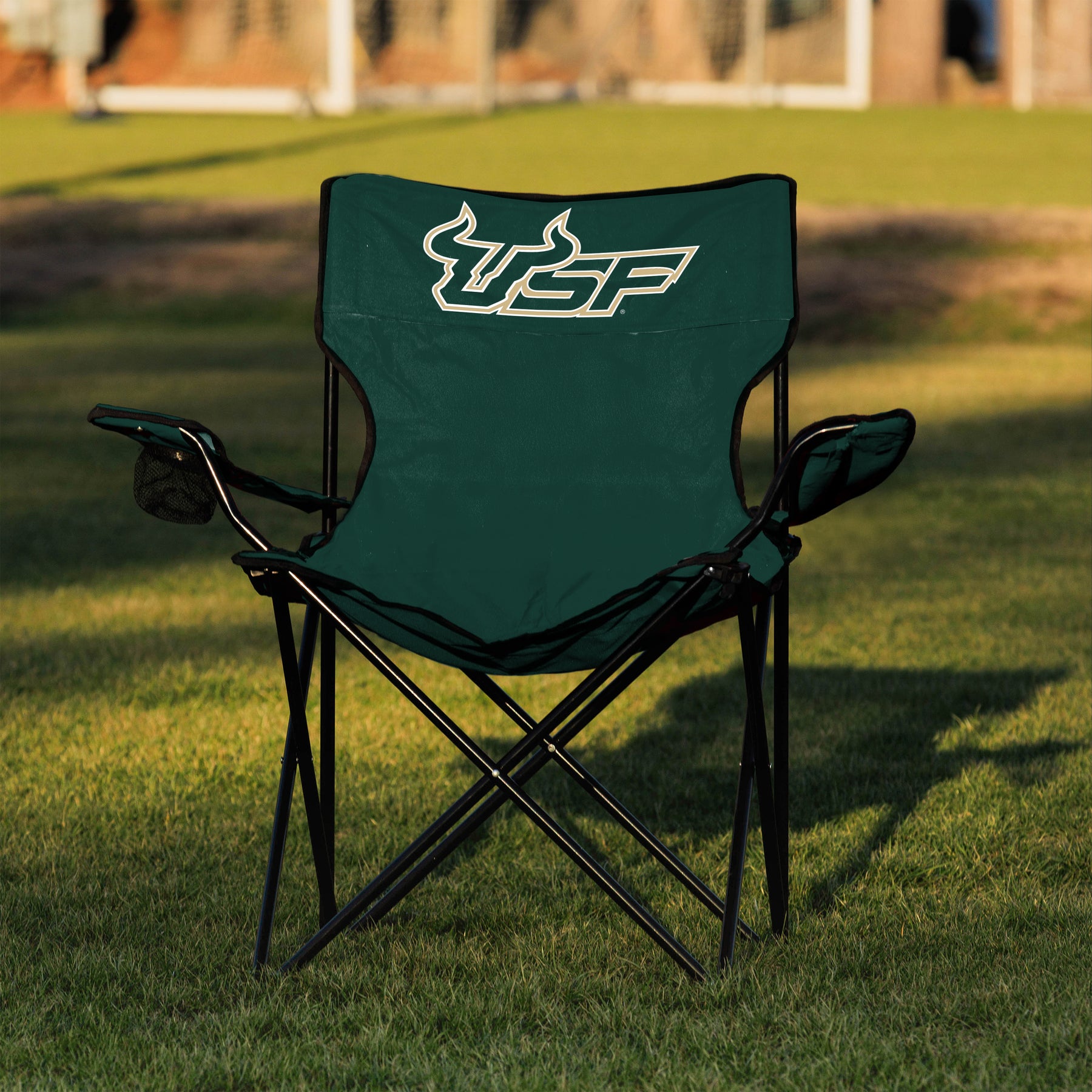 Our comfortable Quad Chair features a 16.5" x 20.5" seating area and 17" high back. It's made of a sturdy, powder-coated, steel frame and double layered polyester with black trim, safely holding up to 250 pounds. The Quad Chair features adjustable armrests and a mesh cup holder on the right side, keeping your drink easily within reach. Your favorite team's logo is screen printed on the front and back, as well as on the matching drawstring carrying bag with shoulder strap. Flat, wide-based feet provide better stability. Count on the Quad Chair for tailgating, backyard barbecues, camping and other fun outdoor activities.