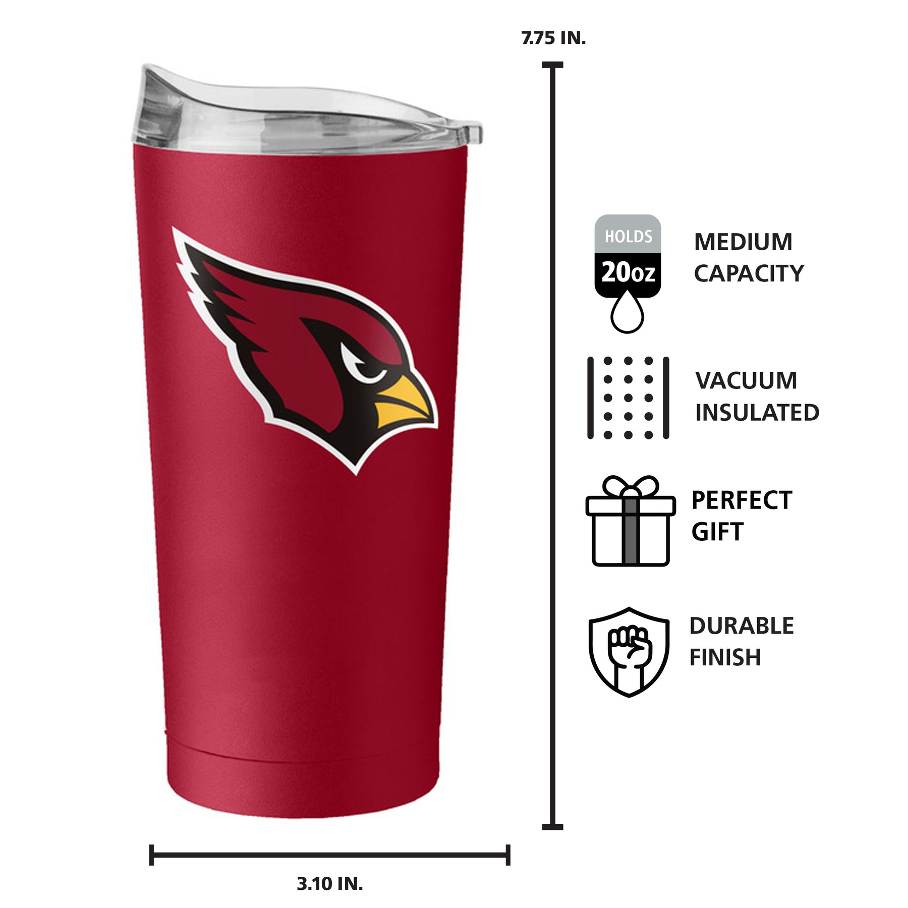 You can count on this sturdy 20 oz. Stainless Steel Tumbler to keep your hot and cold drinks well insulated for hours. It has a slightly tapered silhouette and a durable powder coat exterior. Features a high lip slider lid with room for a straw and a non-slip silicone base. Fits into most cupholders. Made of high quality stainless steel that doesn't change the taste of your beverage.