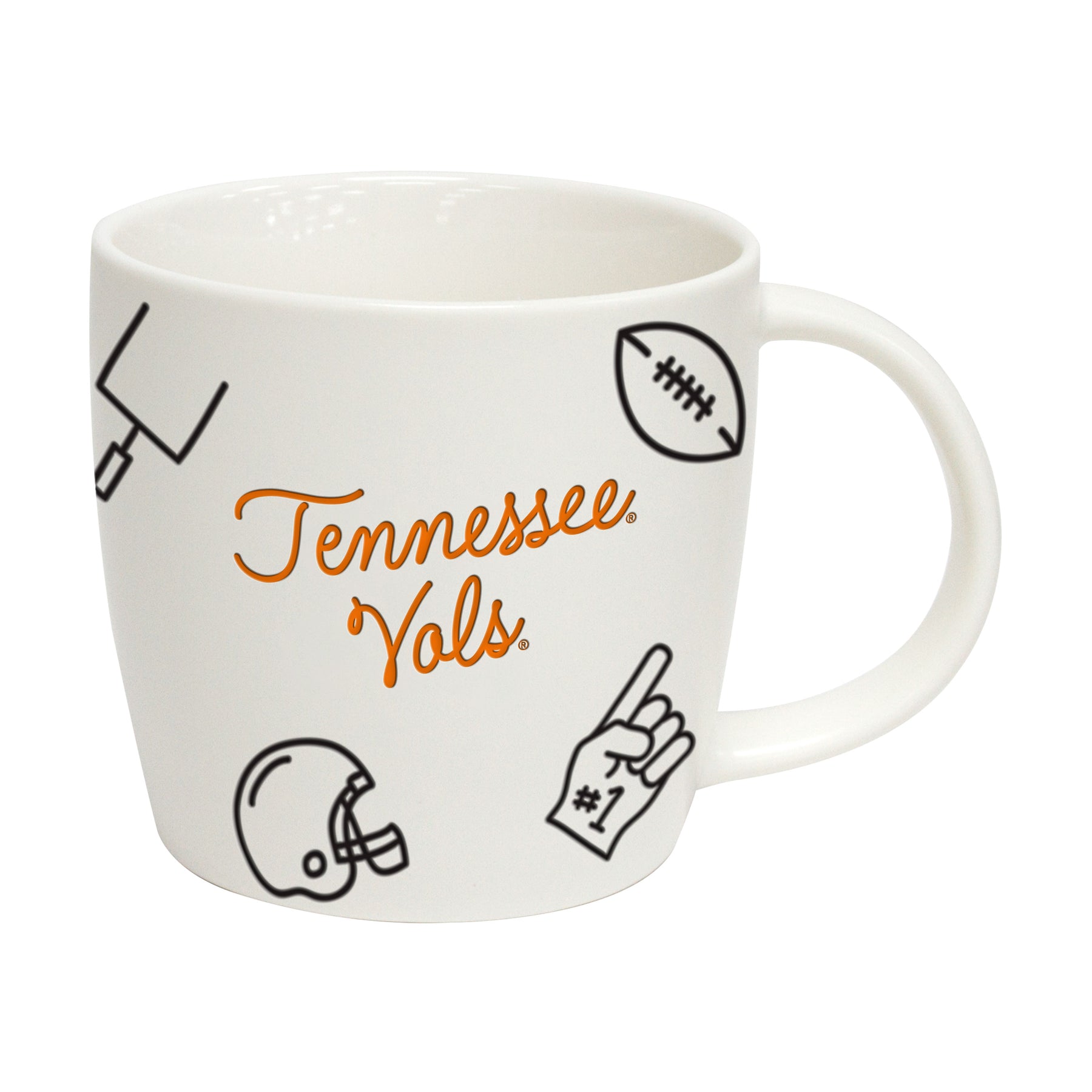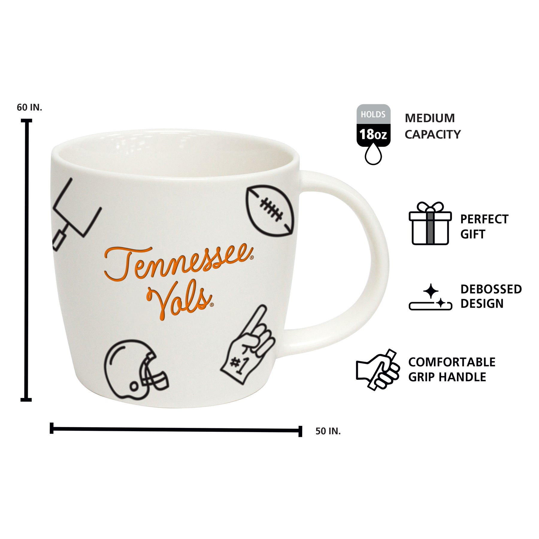 This iconic 18oz Playmaker Mug is one chic piece you'll want to display all year long. It features your team's primary color in a script font with an all-over debossed sport detailing on an ivory colored ceramic. The mug is perfect for sipping all season long. Whether sipping at work, home, or on-the-go, you can showcase your ultimate inner fan.