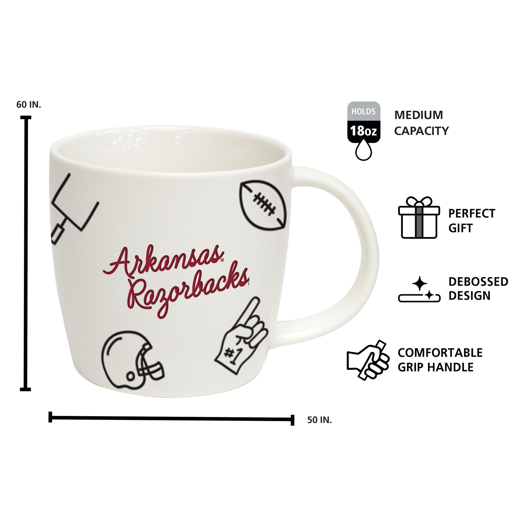 This iconic 18oz Playmaker Mug is one chic piece you'll want to display all year long. It features your team's primary color in a script font with an all-over debossed sport detailing on an ivory colored ceramic. The mug is perfect for sipping all season long. Whether sipping at work, home, or on-the-go, you can showcase your ultimate inner fan.